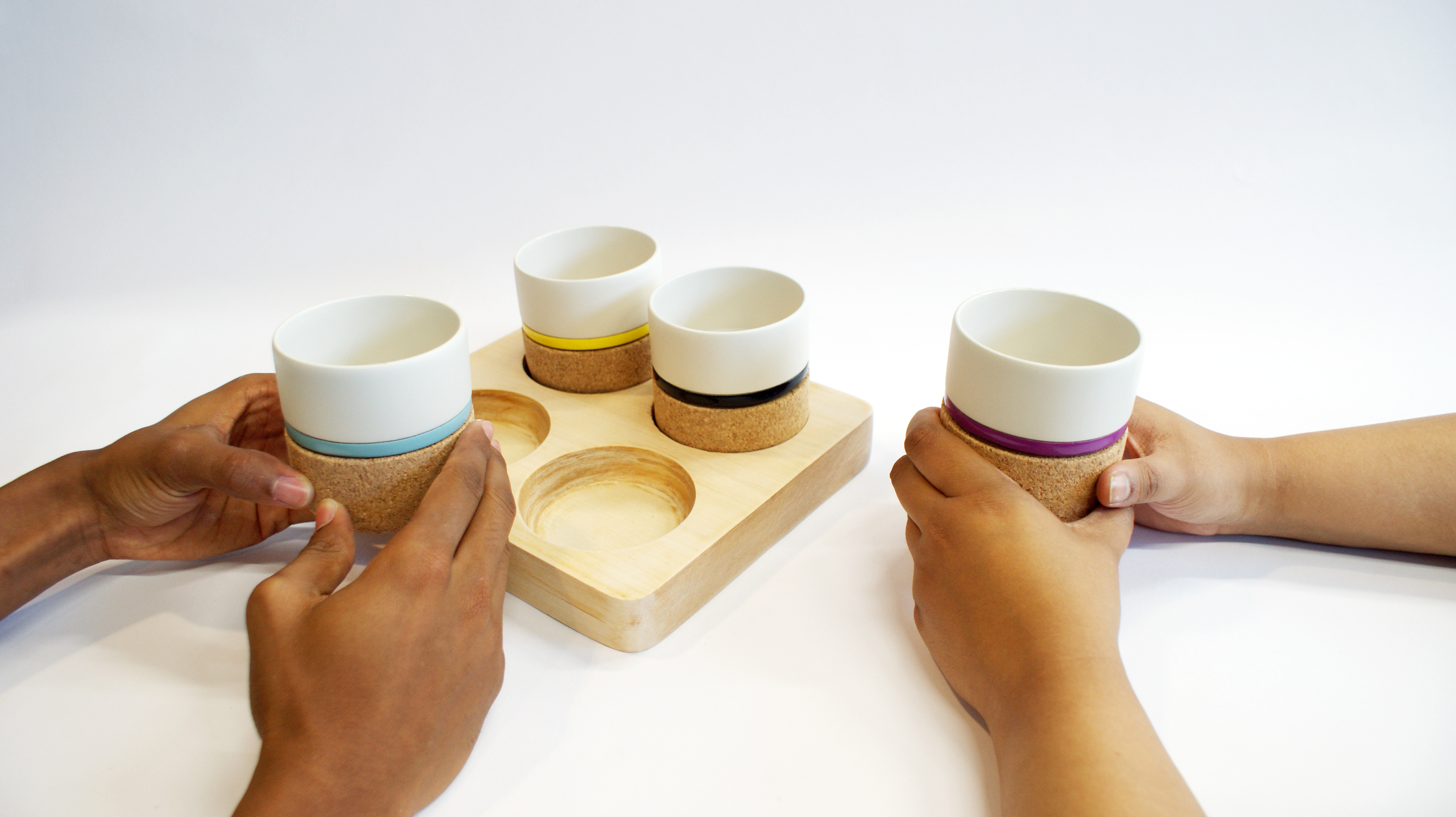 OMU is a set of smart cups which aim to connect people through the effortless act of drinking warm drinks. Targeted towards millennial families, this product is designed to support togetherness within the shared home environment, by encouraging small, daily acts of kindness. Due to the immersion of technology in our day-to-day lives families are drifting apart and are not as close as they used to be. This product aims to reconnect them by simply encouraging short and kind encounters between the people within the shared home. This could be as effortless as offering to make someone a drink.